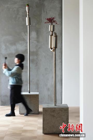 图为不雅寡穿越于拆置撰着《培植》之间。中新社记者 弛亨伟 摄